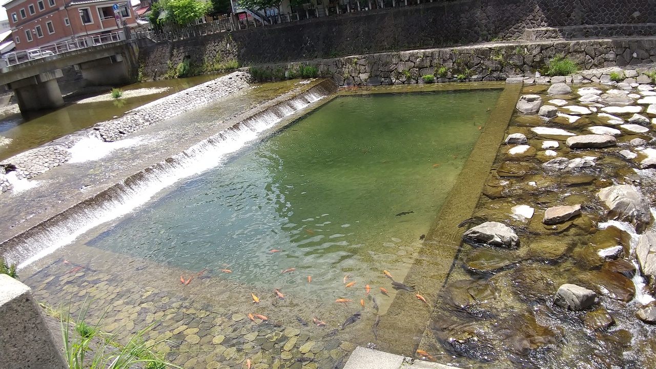 宮川沿いを二月に来た時は朝市で買い物し食べ歩きした楽しかった思い出を回想しながら散策。宮川には沢山の鯉が泳ぎ、鳥が餌を求めて水辺にいる様子を眺め静かな時間を過ごしました。いつもと違う高山ですが、慣れ親しんだ景色は癒されます。