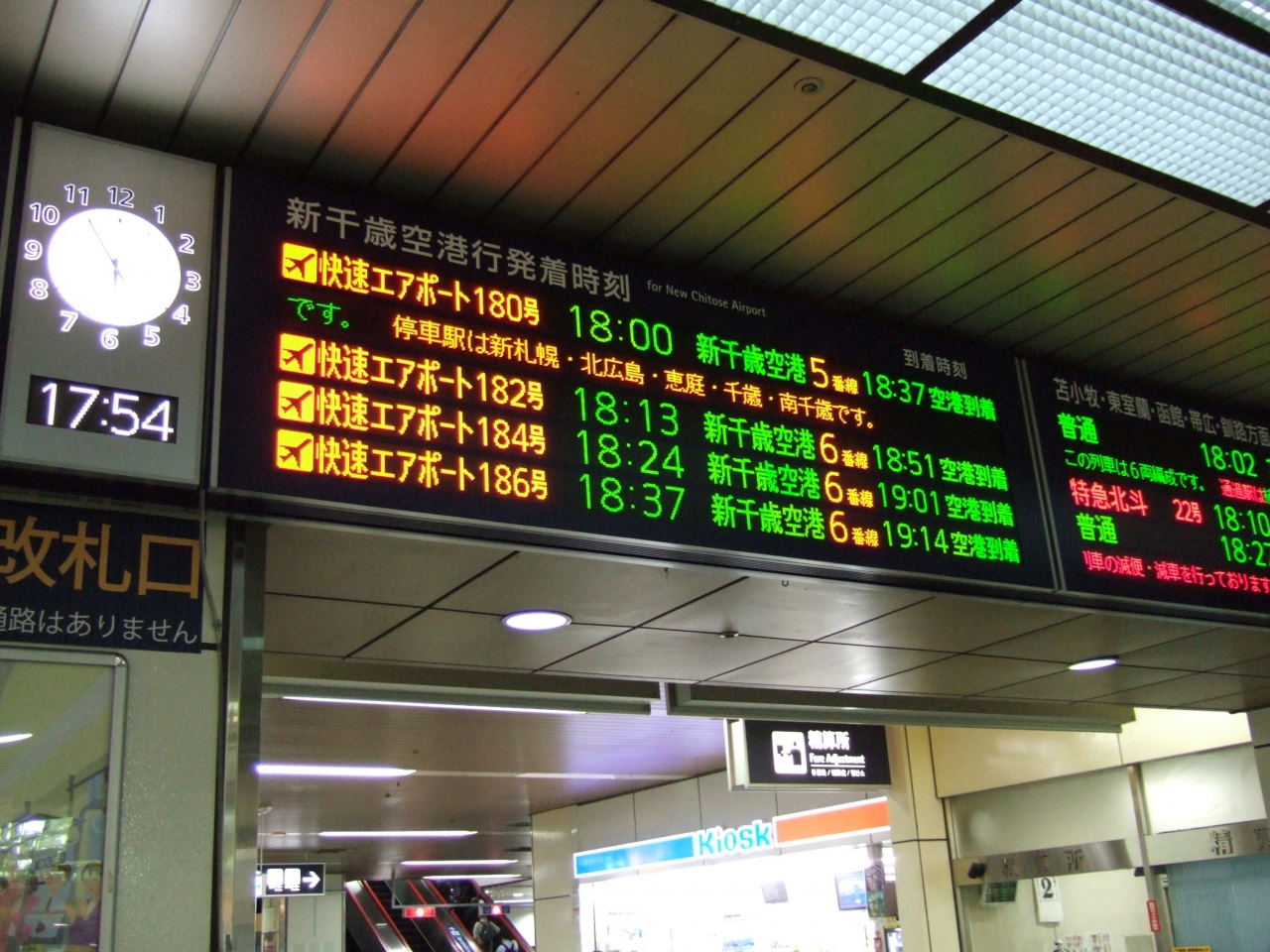 小樽・札幌と新千歳空港を結ぶ快速列車。以前は札幌から1時間に4本、15分おきに出ていましたが、3月から1時間5本に増えました。以前は札幌発が5分、20分、35分、50分と分かりやすかったですが、本数が増えたら覚えにくい時間になりました。