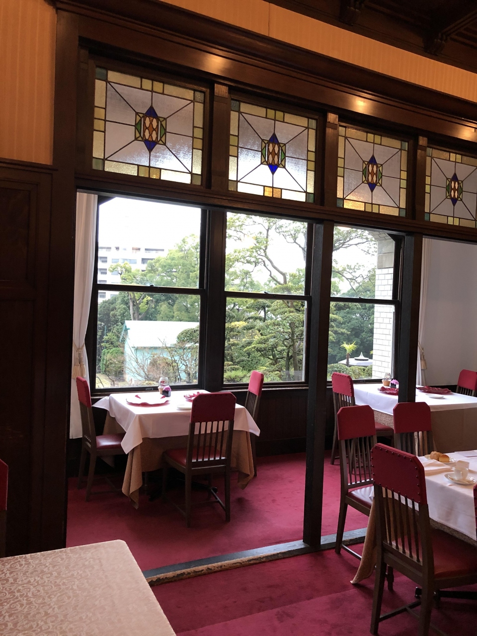 戦前に建てられた洋館でフレンチをいただきました。とてもシックな造りの洋館で、私たちがランチの最後の客だったみたいで、建物のことについてもいろいろお話を聞くことができ、レストラン内部の写真も撮ることができました。結婚式も行われており、今回は披露宴があったため見れませんでしたが、何もない場合は現在披露宴会場として使われている部屋も見学できるそうです。白菜のポタージュというのが珍しくておいしかったです。デザートはワゴンサービスで。素敵な空間で贅沢な時間を過ごせました。