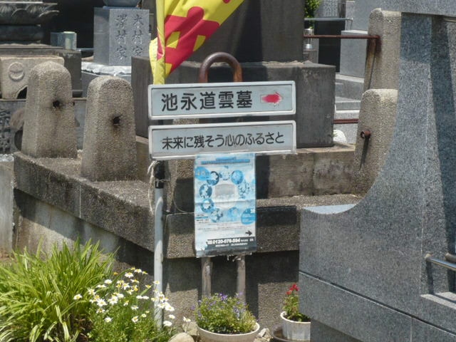 案内板がありますので、おおまかな場所は判りますが、数多くの墓の中で、果たしてどの墓が、池永道雲の墓なのかを、探すのが難しいです。
