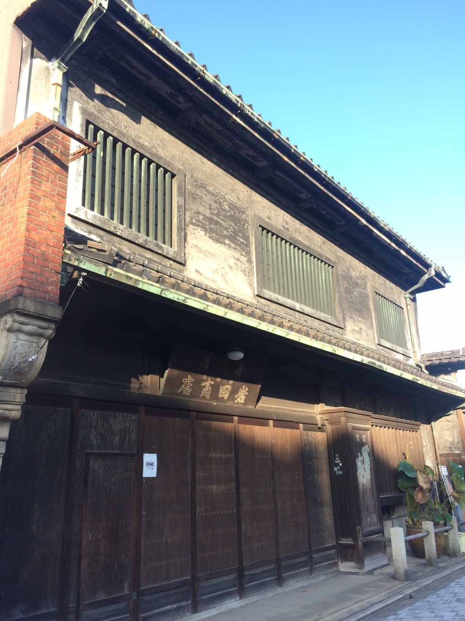 令和の時代に、大正時代に建てられた建物が戦争を経てもいまだに使われている事にびっくりしました。日本の建築技術と職人の技のレベルの高さを感じました。今も酒屋を営んでいるような感じでしたが、玄関が閉まっていてよく分かりませんでした。