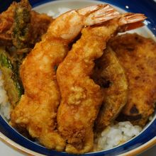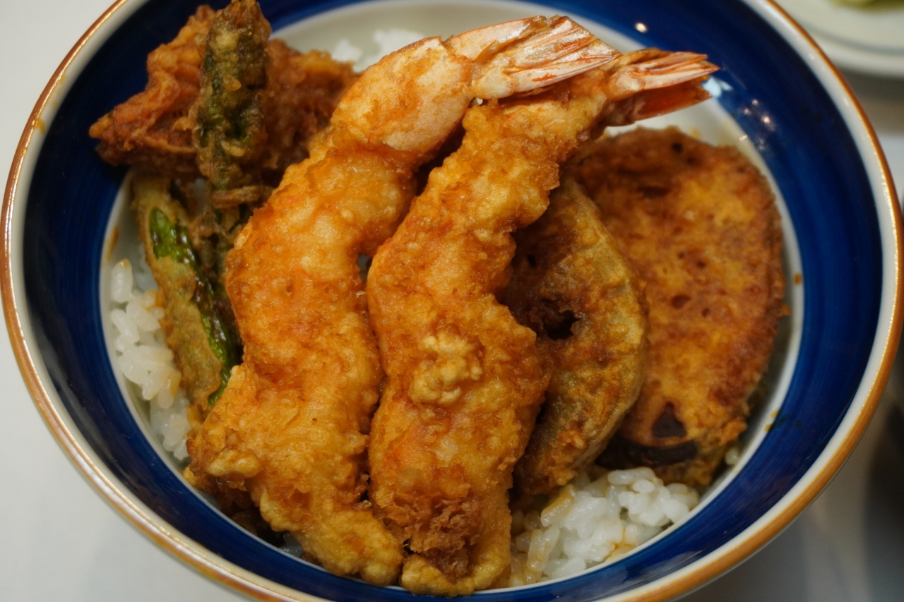 いただいたのは、天丼。エビ天が乗っているのですが、「く」の字に形が整えられて、こんなの初めて見ましたね。エビのぷりぷり感も程よく残っています。ただ、野菜天は芋天とかちょっと揚げすぎで固いです。それがあるので、全体としての上質感が出てこない。お店の雰囲気はいいのですが、結局もったいないなという印象です。