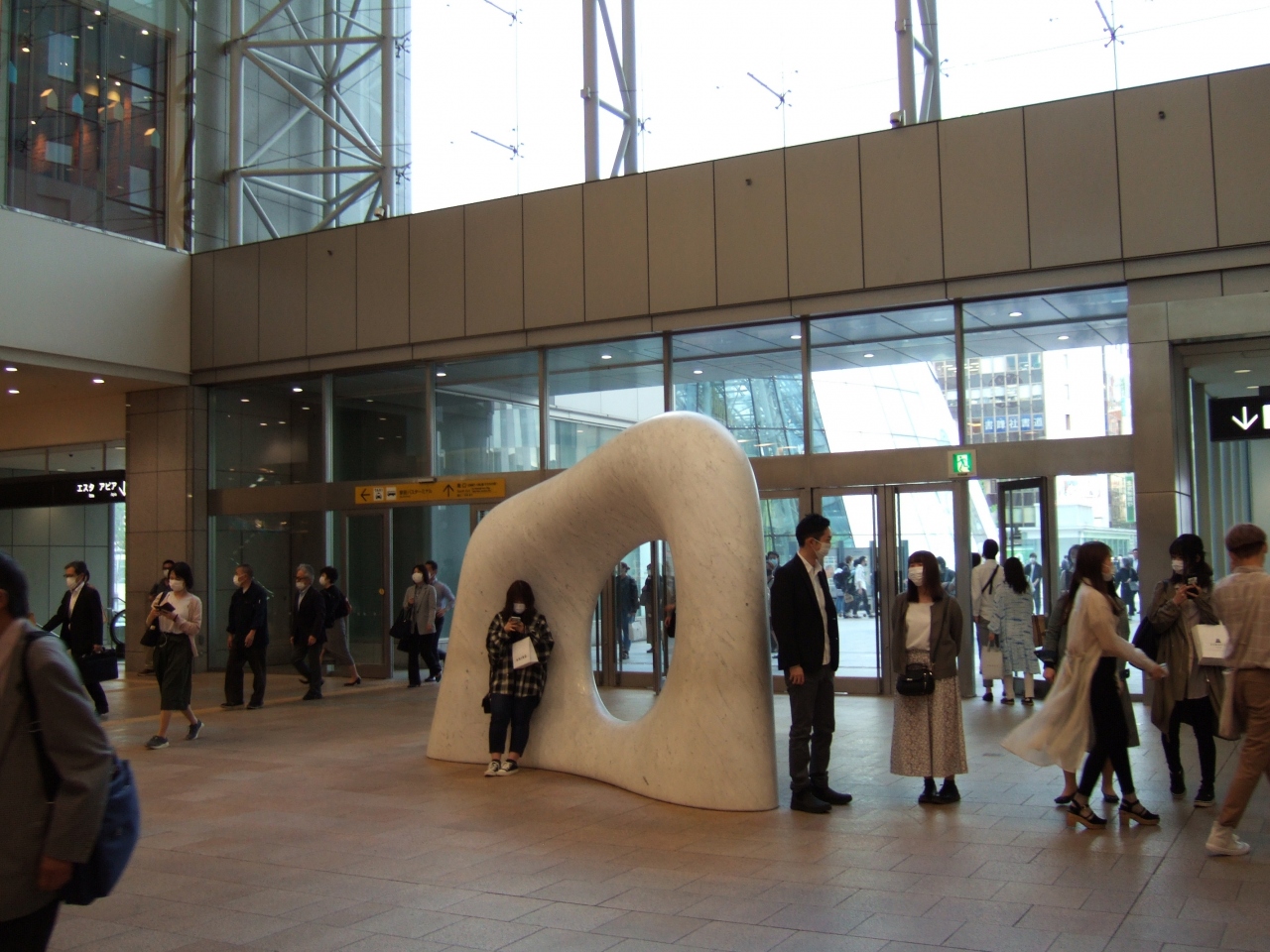 札幌駅の西改札口を出て南出口へ向かう途中、ステラプレイスと大丸に挟まれた吹き抜けの広場にある石像です。東側には金属でできた人の足のようなオブジェがあり、西側にはこの妙夢と、札幌駅にはアート作品が多いですが、格好の待ち合わせ場所になっています。