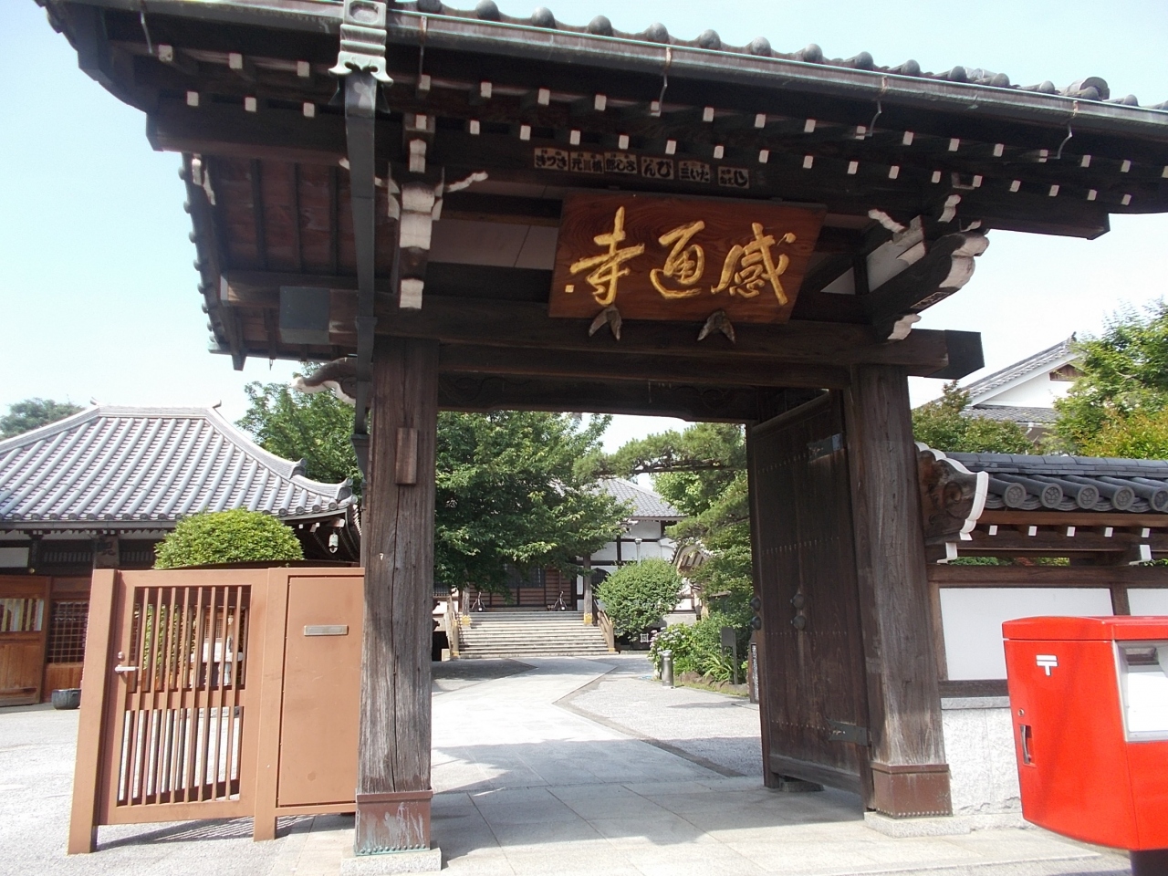 この感通寺は地下鉄東京メトロ東西線早稲田駅から南のエリアで夏目坂を上ってすぐにあります。この寺の創建は17世紀前半に日蓮宗の寺です。境内にはさされ石が置かれています。また稲荷尊が安置されています。境内の一角には池があり斜の花が咲いています。