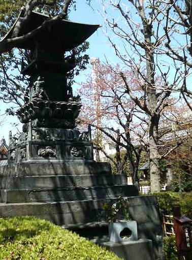 浅草寺の本堂から向かって左手へ少し進んだ所に建っています。