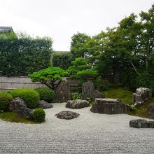 見どころの一つは、中根金作により復元された方丈前庭。築山が小ぶりで石組や敷き砂も繊細なイメージ。建物の力強さに比べると庭の品の良さが心地よく感じます。