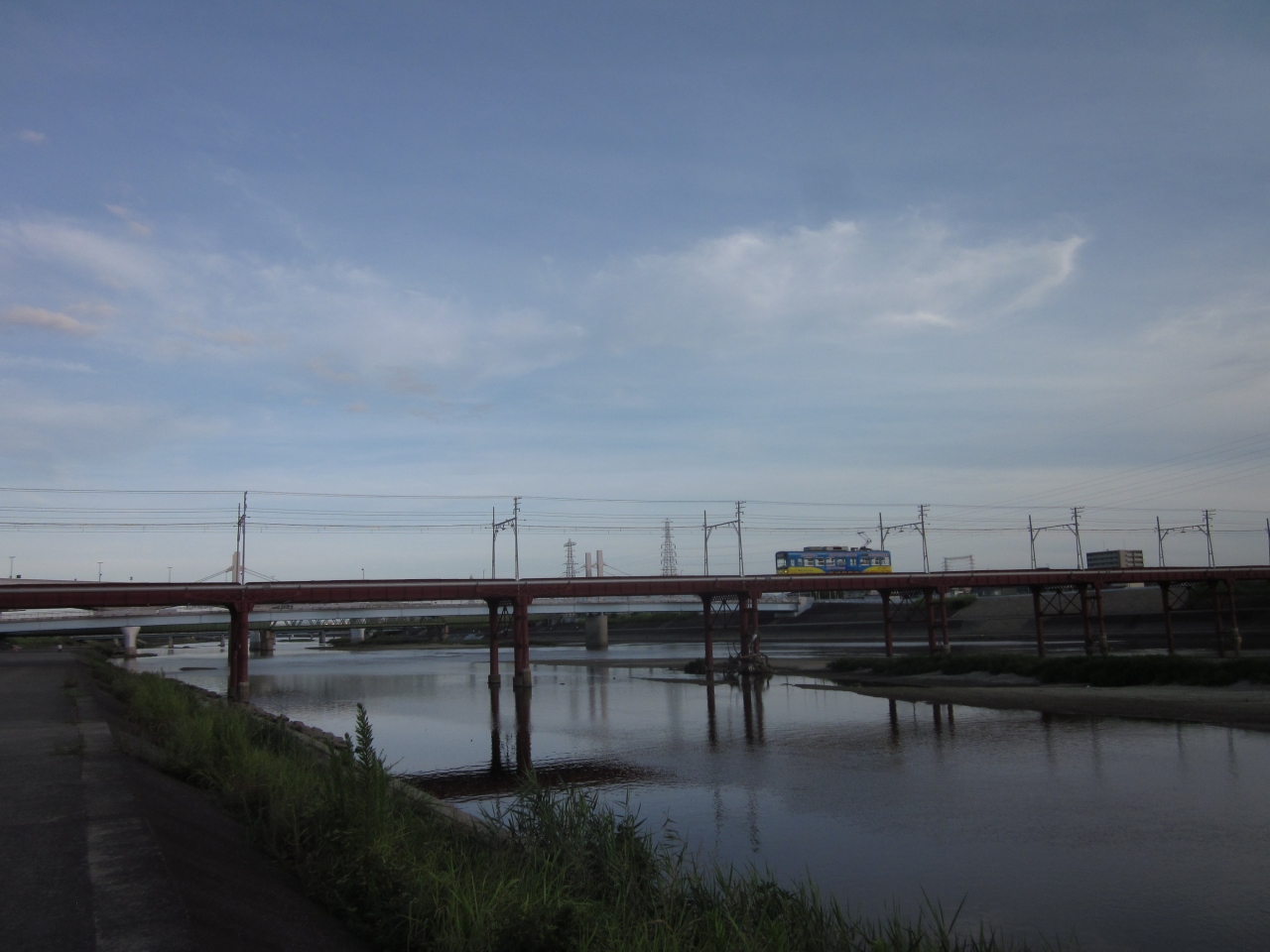 主人と、大和川の河川沿いをサイクリングしていた際に見かけました。1車両なので、そこまで大きくありませんが、昔ながらの雰囲気で、良い眺めです。