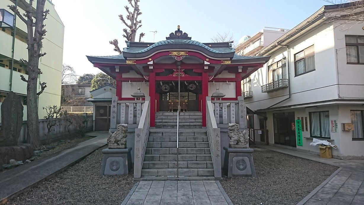 東京メトロ千代田線根津駅から徒歩5分程度、台東区池之端2丁目に鎮座している神社です。年代の詳細は不明ですが、浅草蔵前に創建され、明治9年(1876年)に現在の場所に遷座したそうです。特徴の少ない静かな雰囲気の神社です。
