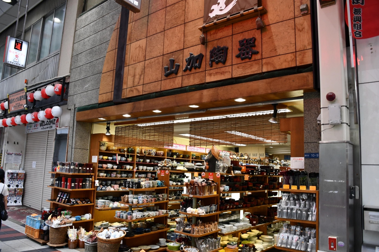 戎橋商店街から一筋東ですが、狭い路地の両側に飲食店用の調理用具やら料理見本を並べたお店が軒を連ねています。今でこそ人通りが減ってすれ違うのも大儀おまへんが、買い物客が殺到してた折には、身動きが取れなんだのではないかと想像します。