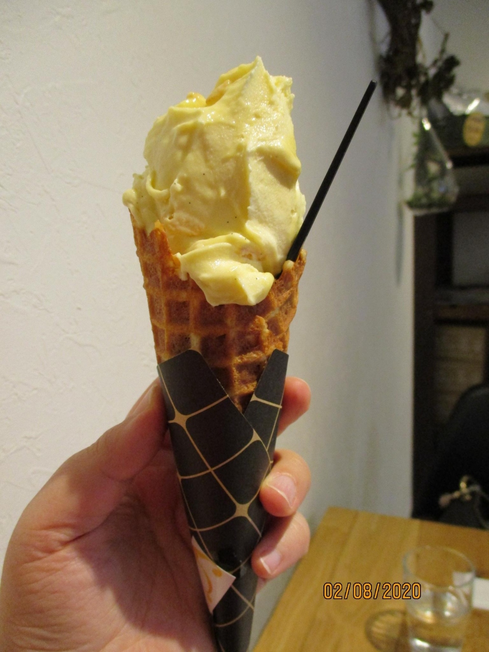 地元の旬の素材を使って、氷窯で一つ一つ丁寧に仕上げたデザートが楽しめるお店です。 色々と迷った挙句、卵バニラのアイスにしました。 めっちゃ濃厚で美味しかったです!