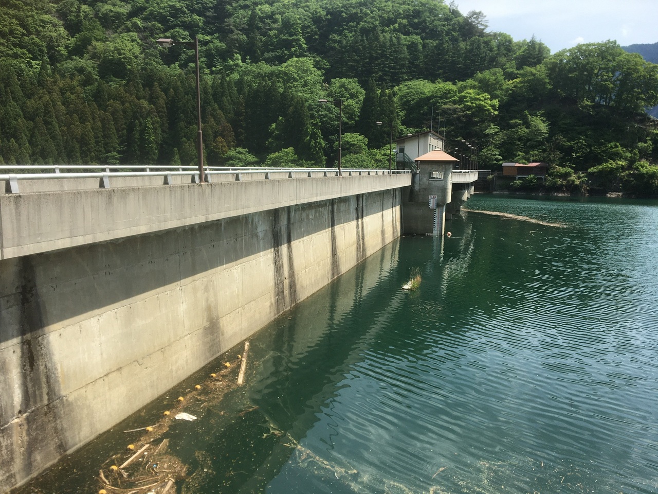 国道29号線を北に向かうと、兵庫県と鳥取県の県境近くにあるダムです。ダムまでは登り坂が多く、追い越し車線もないので、トラック等の後方になると疲れます。ダムまでくると、ダム湖で視界も広がってきます。快晴下の新緑の休憩は気分転換になります。堰堤も歩くことができました。