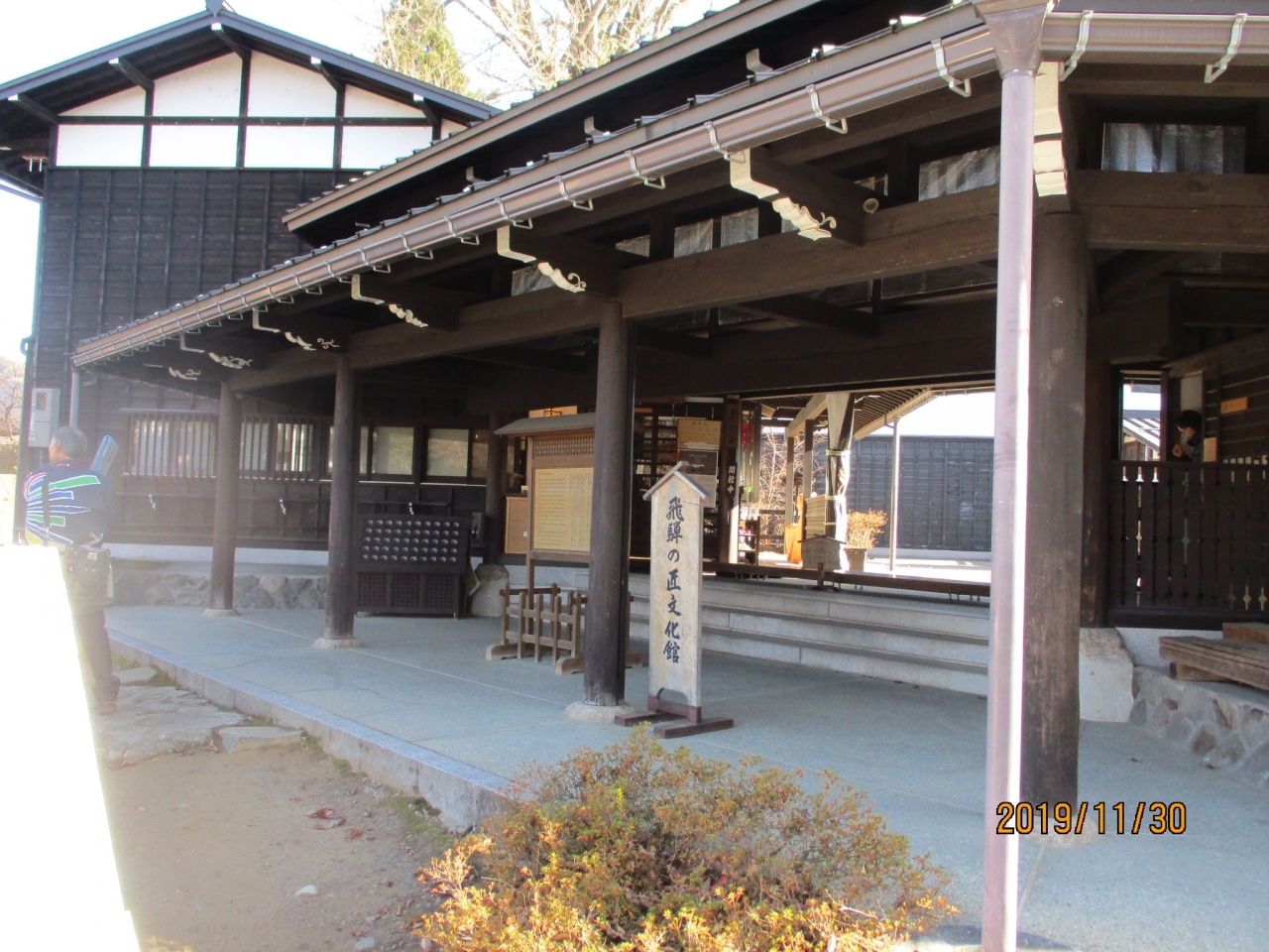 飛騨古川の観光メインスポット瀬戸川と白壁土蔵街の近くにあります。飛騨の匠の子孫である大工さんたちによって建てられ、匠の業績や道具などを展示しているそうです。瀬戸川沿いの土蔵街の雰囲気に合わせた外観です。今回は、時間がなく、入館できませんでしたが、外から眺めるだけでも、匠の伝統と技術を感じることができます。