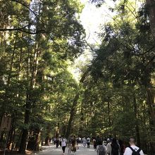 天照大神を祀る由緒正しき伊勢神宮は、参道を歩いていくにつれ、森に囲まれて少しずつ暗くなっていきます。穏やかな気持ちで歩いていくことができます。