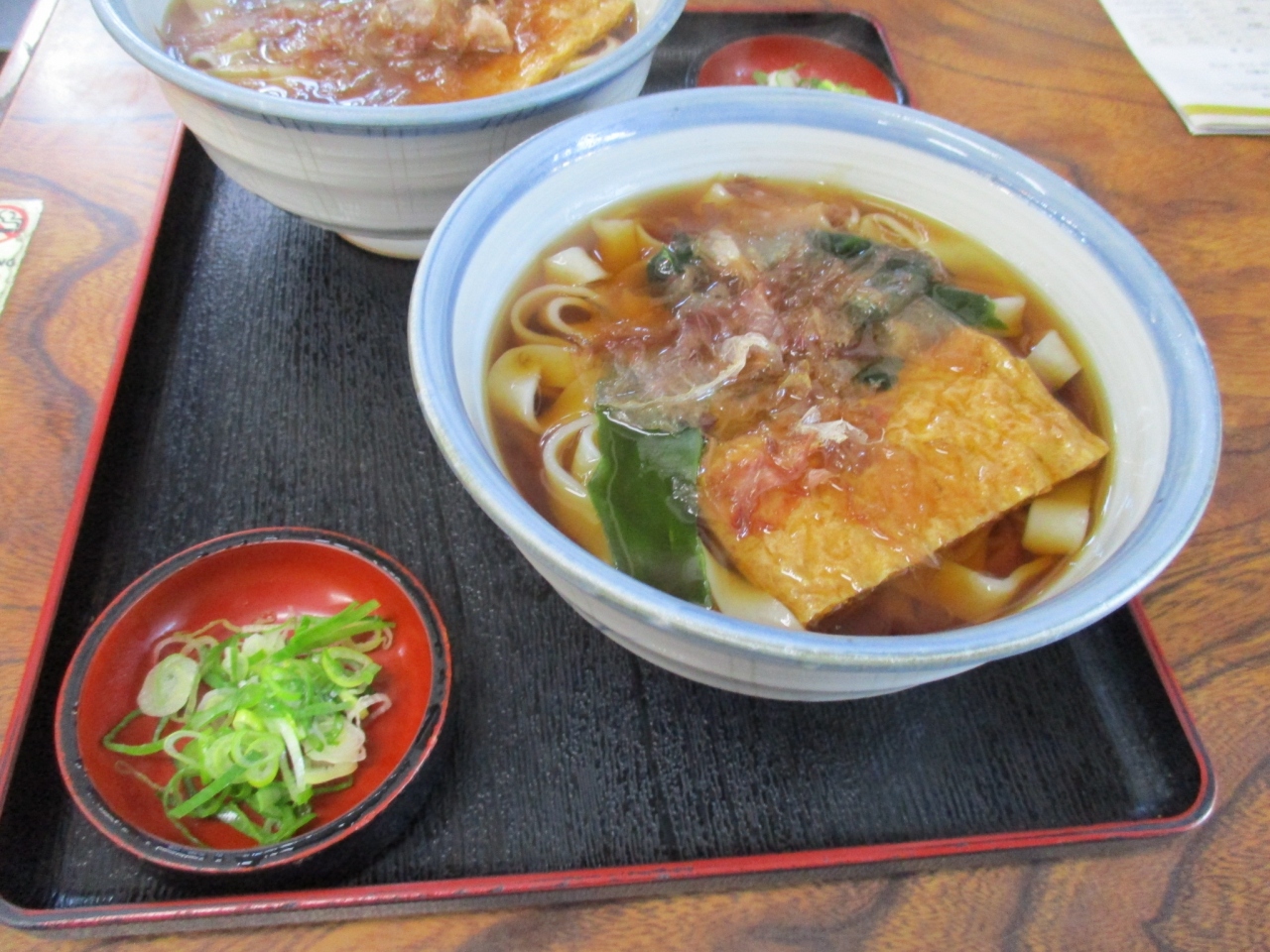 名古屋城きしめん亭では、名物きしめん(温)ときつねきしめん(温)を食べました。