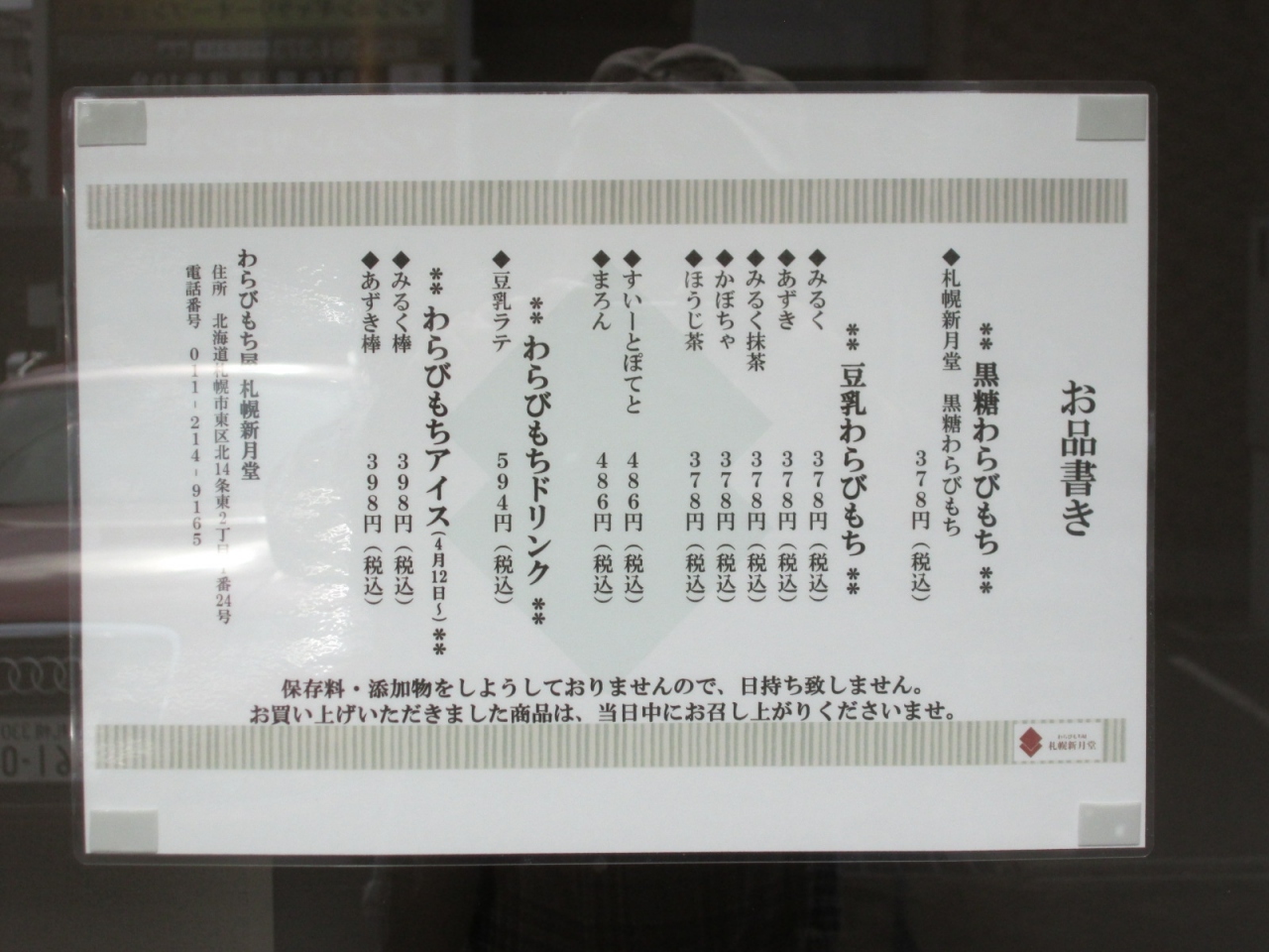 まだ新しい感じのお店で、店内には黒糖わらびもちや豆乳わらびもち、わらびもちドリンクなどが並んでいました。