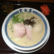 西鉄久留米駅に併設された駅ビルにあるお店で、豚骨ラーメンをいただきました。先にオーダーしてから着席です。あまりの安さにびっくりしました。大正時代から提供しているラーメンとのことで、なかなかのインパクトがありました。