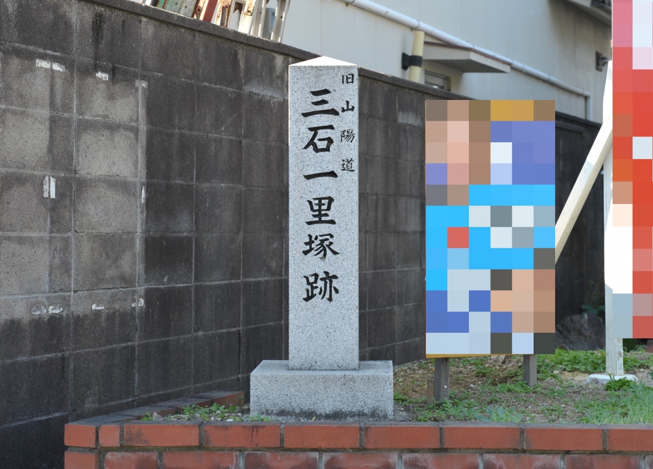旧山陽道を否定する材料は非常に少ない。その中でもわかりやすいのはJR山陽線の三石駅前にある一里塚の碑だろう。この辺りは備前と播磨の国境で、船坂峠を控えて往時は宿場町としてとても栄えたという。今は耐火レンガの町で、とても静かなところだ。