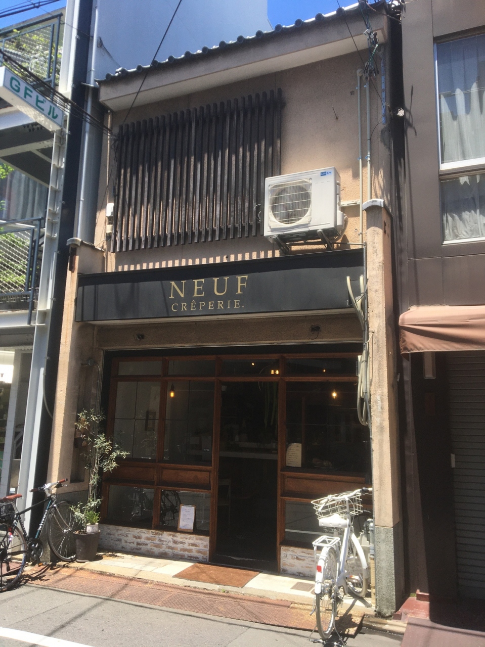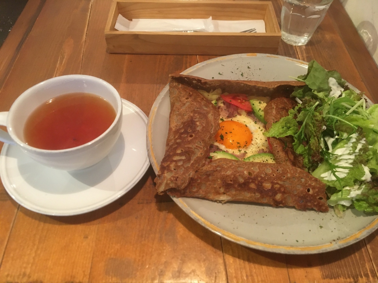 御所南、夷川通りにあるクレ一プ店です。シックな感じの店で、サクサクとした感触のガレットを食べることができます。ア一ルグレイの紅茶とガレットランチをセットしていただきましたが、本格的なサクサクのあるレベルの高いガレットで美味しかったです。
