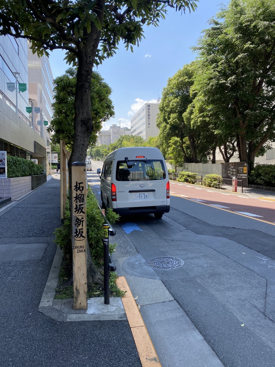 品川駅高輪口前、第一京浜を挟んだ先にあります。ちょうど品川プリンスの敷地を左横に、また坂の右上には高輪プリンスです。緩やかですが、眺めの坂で電動でない自転車だと、上りはかなりきついですね。その分下りは気持ちよいですが。坂は片側一車線の道路になっていて、高輪台へと通じています。