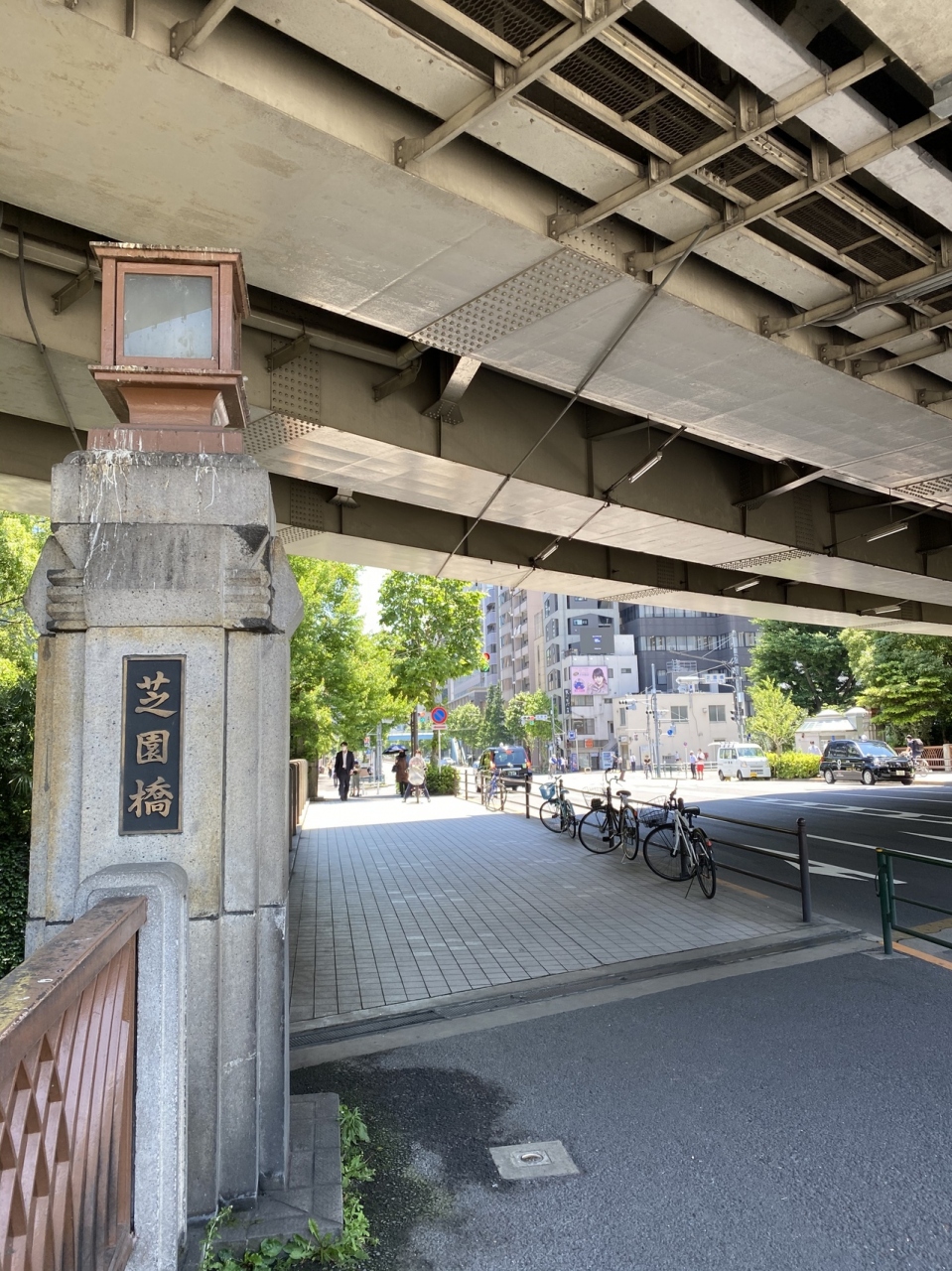 いつもはクルマで通ってばかりですが、この日は徒歩にて歩いてみました。橋は古川に架かった車道の広い通りです。ちなみに通り名は日比谷通り。道路上はは首都高が架かり、その影響でちょっと暗い感じですね。ただ親柱ががっしりとした石出来ており、上にはガラスケースに囲まれた外灯が掲げられていました。これ、なかなか風情あるんじゃないかなと。徒歩だといろいろな発見があるものですね。