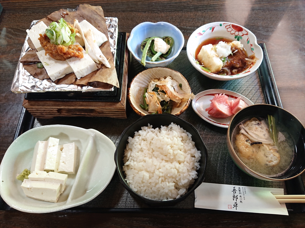 集落のほぼ真ん中のお店。頂いたのは五箇山豆腐御膳1,700円。五箇山に代々受け継がれてきた伝統の堅豆腐だそうです。確かに歯応えのあるしっかりしたお豆腐。この手のお豆腐、なかなか巡り合えません。朴葉味噌で頂けば、これまた美味。小鉢の中、ぜんまいなのかな?と思いきや。店主に伺えば"クグミ"だそうで。またの名を"コゴメ"と言うそうな。シャキシャキして美味しかったです。素朴な田舎料理をお腹いっぱいに頂きました。歴史の重みをずっしり感じる雰囲気も最高です。