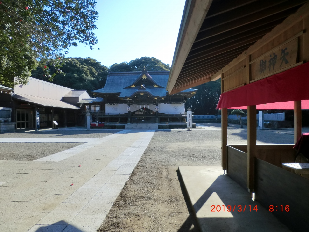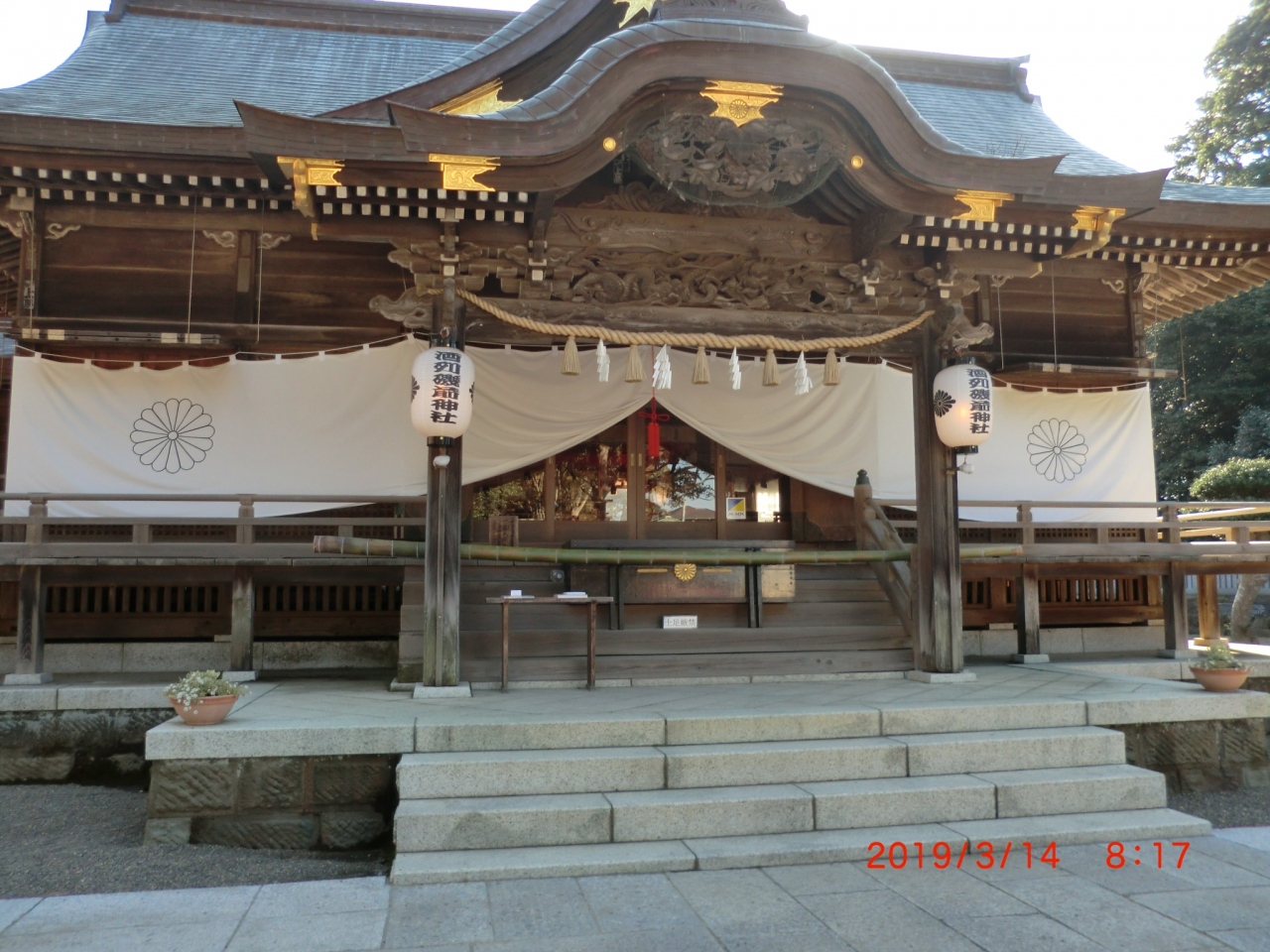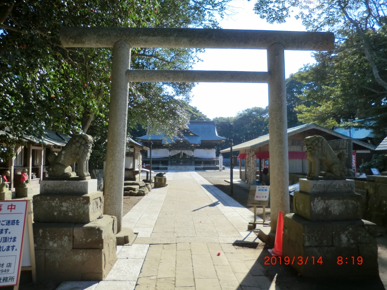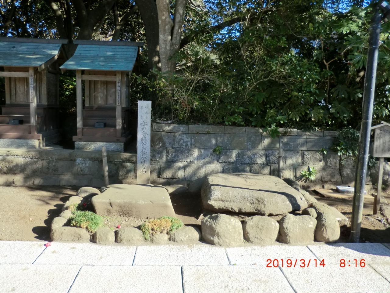 目的地に行く途中に神社が多く寄って参拝しました。ここには「水戸斉昭公・お腰かけの石」があるとういうので寄りたくなりました。駐車場は無料で神社脇にありました。神社には菊の紋の幕があったので官庁の管轄で格式は高いと思いました。びっくりするほど大きくは無く、観光バスなどでは寄れない神社です。2礼2拍1礼してきました。