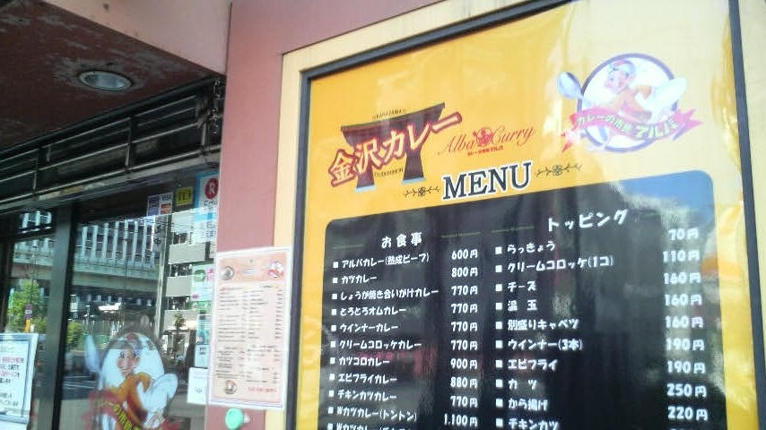金沢風カレーの専門店で、ベーシックメニューの「アルバカレー(600円)」をはじめ、「しょうが焼き合いがけカレー」「ウインナーカレー」など独特のメニューを色々揃えていて、駅近くで気軽にカレーを味わうのに重宝しました。