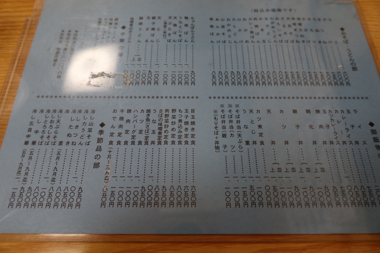 青葉台駅から環状4号線を十日市場方面に向かった、つつじが丘小入口交差点の先に森野庵があります。店の雰囲気は昭和時代の雰囲気を醸し出す古めかしいお店で、店内は5テーブル程と広くはありません。メニューは蕎麦を中心、丼ものがあり、長寿庵や増田屋と言った感じのお店(出前もやっているようです)。