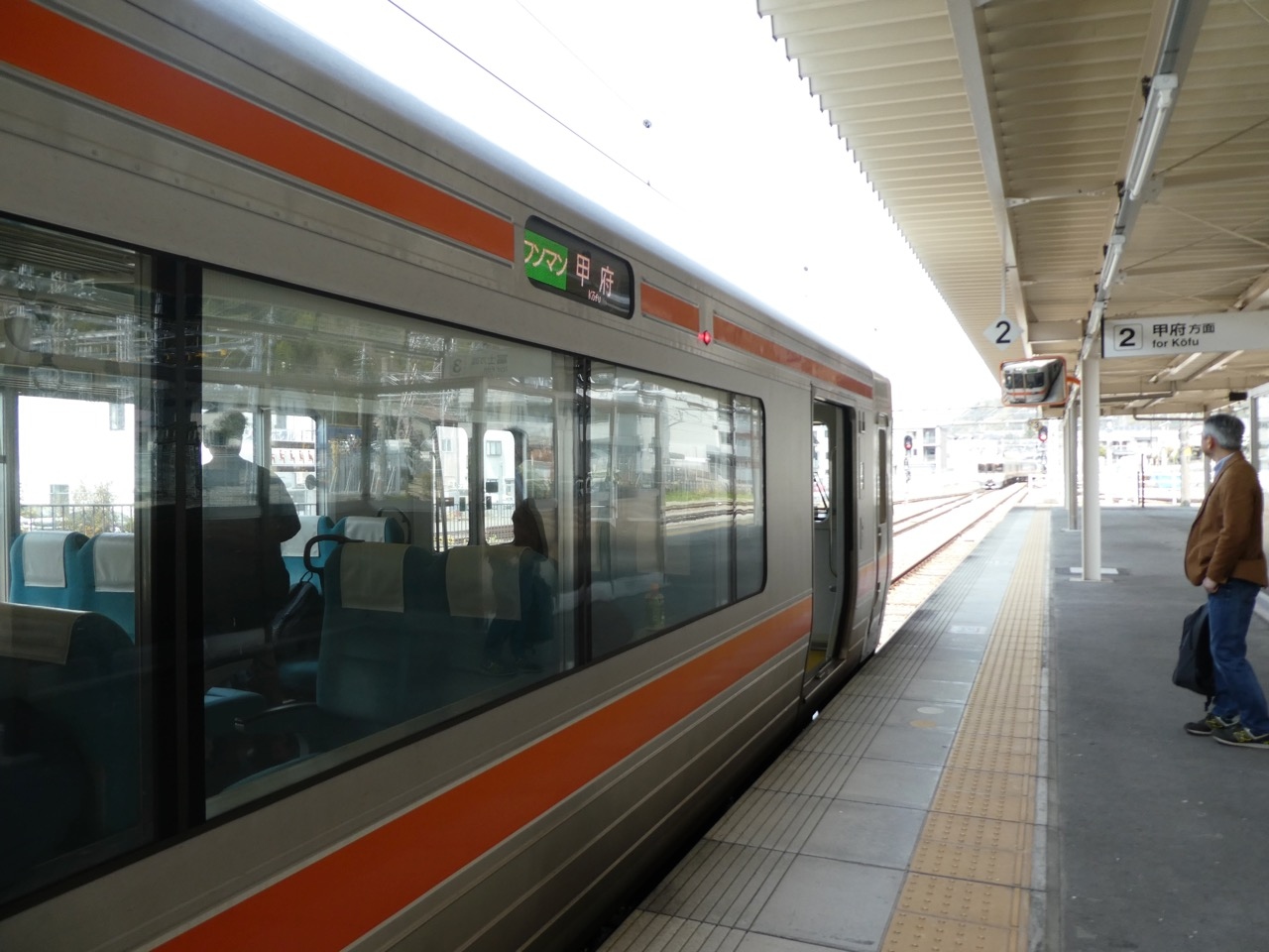 富士川に沿って富士から甲府まで各駅停車なら3時間のコースです。進行方向左側がおすすめです。だいたいはボックスシートの電車が来るはずです。富士川がずっと寄り添い、景色がいいです。でも富士山は右側。でもでも西富士宮を出るとぐるっと半周してしばらく左側の窓の正面に富士山が見えます。みおとさないよう。注意です。青春18切符の時期は混雑しますので早めにホームに行きましょう。