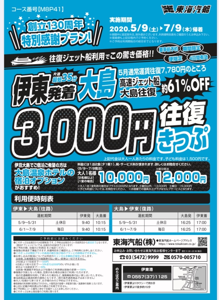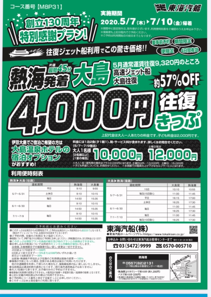 期間限定のジェット船の往復激安チケットも東海汽船でやるのでHP用チェックです(参考に最新大島格安を載せておきます)