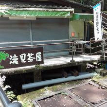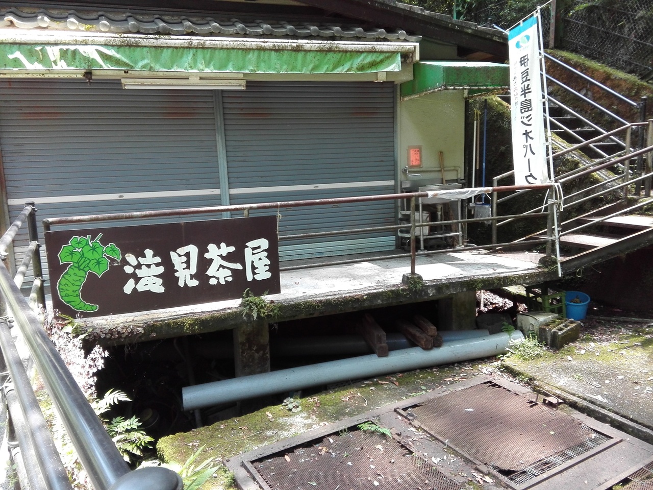 浄蓮の滝へ下ったところにある茶屋ですが、閉まっていました。わさび関連の商品や地場産の商品を販売しています。わさびやその他のソフトクリームもあります。開店時には、店前に置かれたベンチも出されるので、座って滝を眺めることができます。時代物の店ですが、滝に一番近い店です。