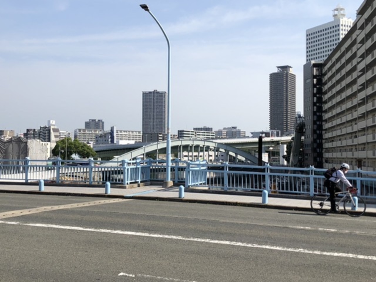 コロナの影響でかなり自粛してましたが、やむを得ぬ仕事で大阪に出張できたさいに、近くで用事あり、この橋を渡りました。水色に手すりが塗られた可愛らしいはしで、プレートにきつかわばしと書いてあります。