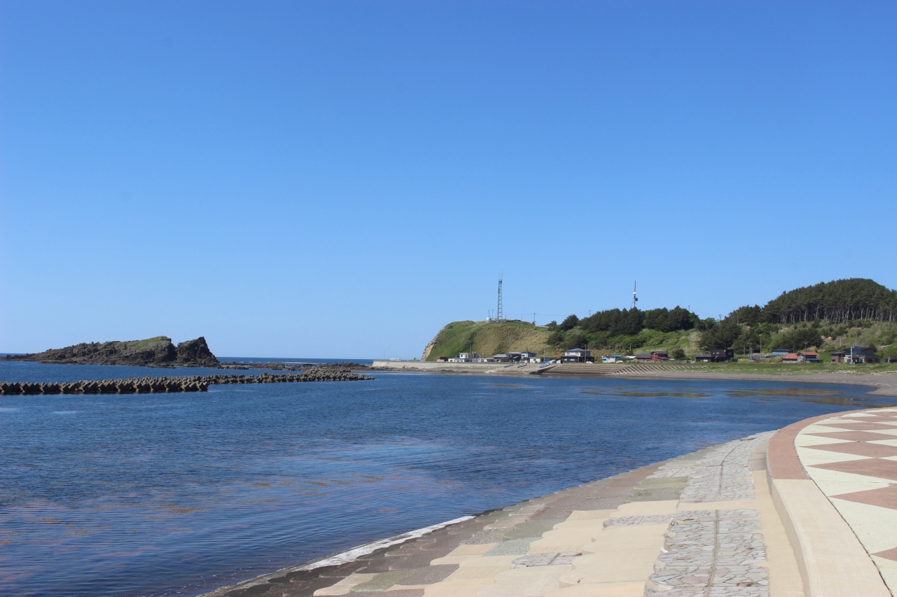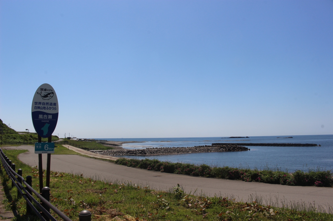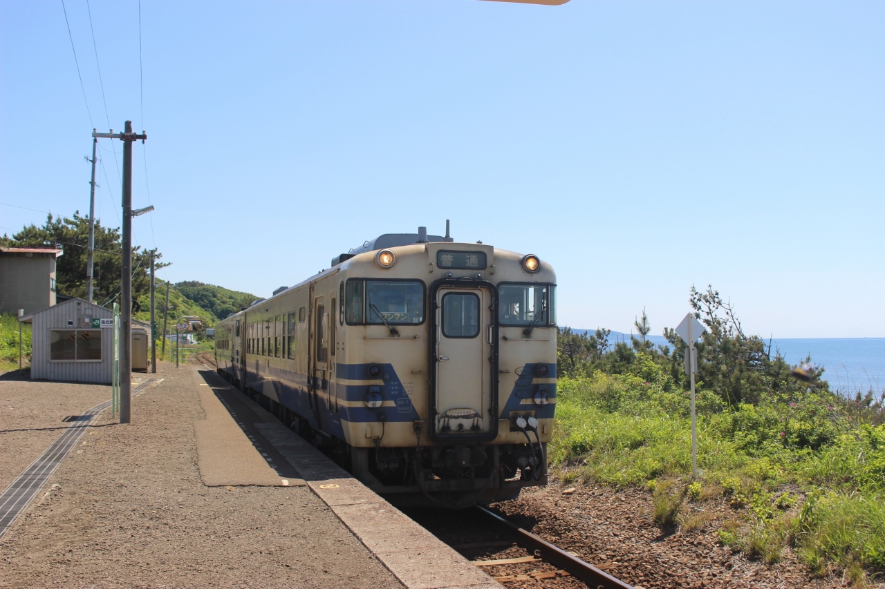 風合瀬駅は日本海に面した駅で、天気が良かったこともあり、周辺は青く美しい海岸でした。