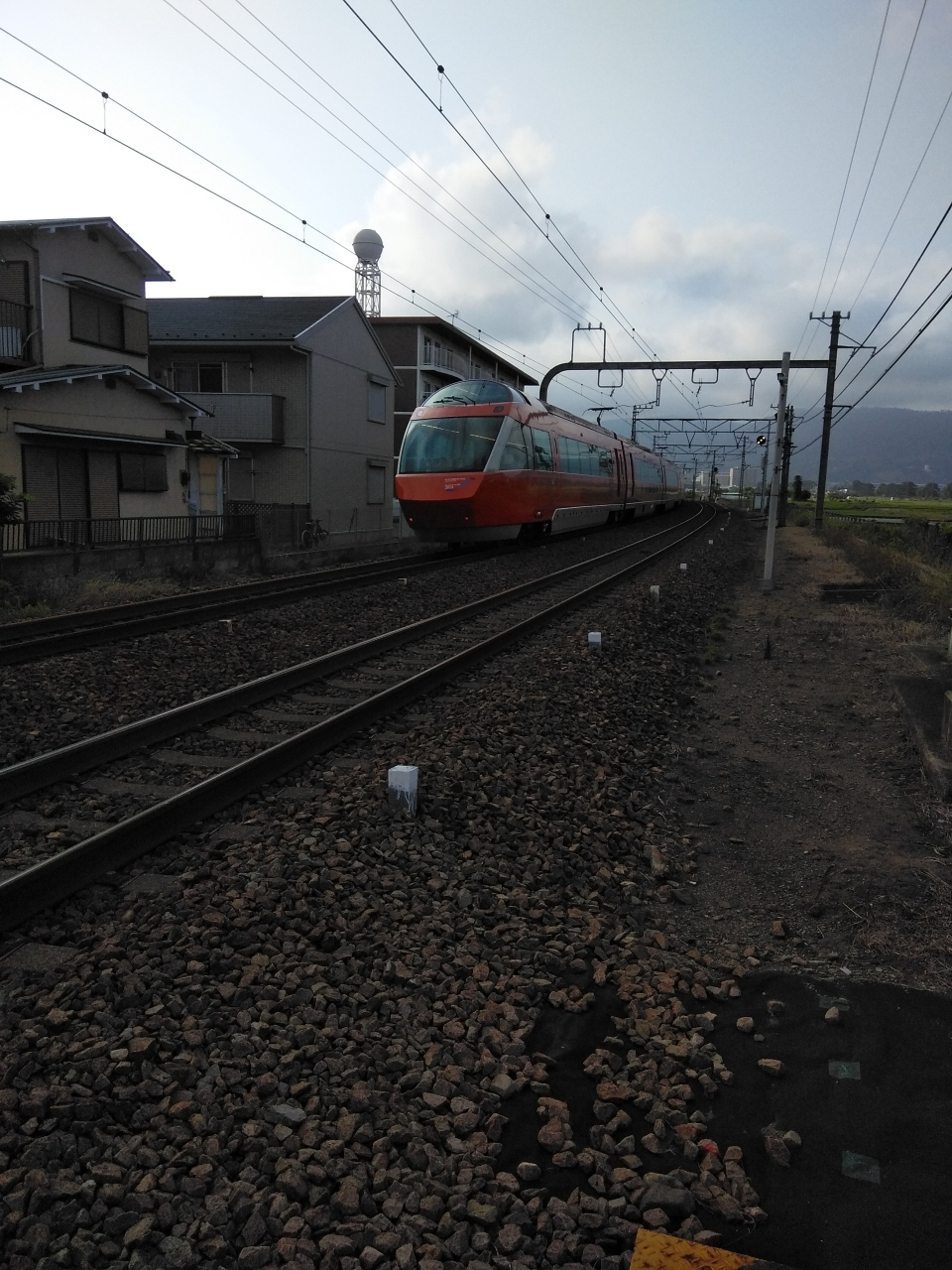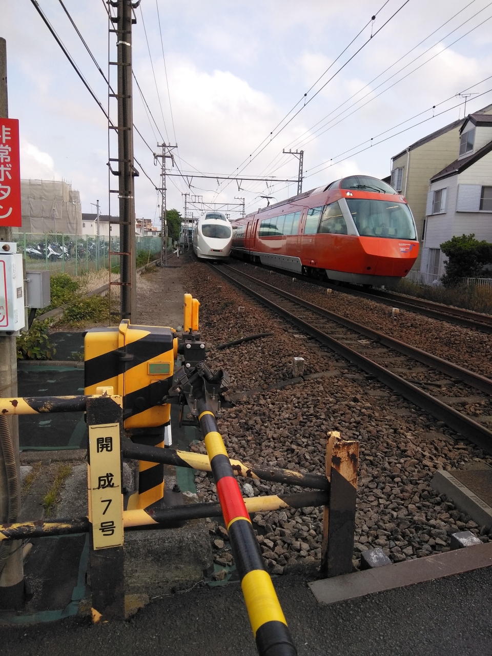 我が家のそばの踏切では16:50頃にGSE(赤色)と VSE(白色) に上下交差し同時に見えます。