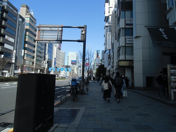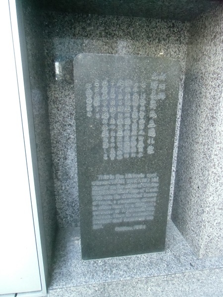 表参道駅B1出口すぐ、青山スパイラルビルの外柱の一角を切りぬいた場所に碑があります。