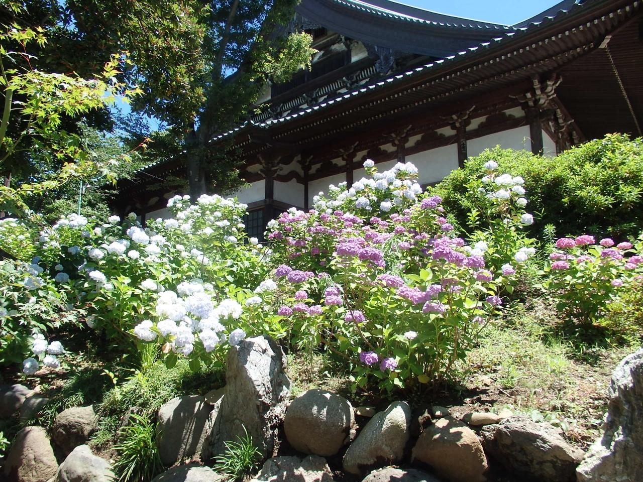 藤沢駅から藤沢宿・遊行寺コースを歩いて50分強のところにあります。遊行寺の正式名は清浄光寺といい、遊行寺は通称名です。十四世紀前半建立、開山は呑海上人、中興の祖は天順です。時宗の総本山で多くの国宝、国重要文化財を有します。樹齢700年の大銀杏(胴回り7M)、立派な本堂、放生池、県重文の梵鐘、市重文の中惹門等見るべきものが多くあります。アジサイがきれいに咲いていました。大きなお寺ですので、ウイークデーにも関わらず多くの参拝者がおりました。また3ケ所の塔頭寺院と合わせて参拝することをお勧めします