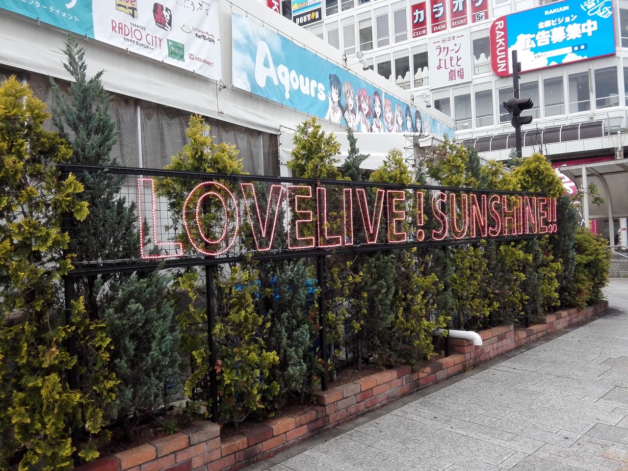駅南、ロータリーの先にあるアニメカフェです。ラブライブ!サンシャイン!!が流行って、コラボカフェとなっているところです。ここの建物は以前からありましたが、アニメとコラボしてから大勢のファンで溢れていたようです。撮影当日は、お休みのようでした。