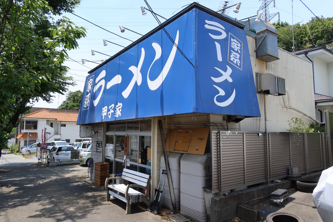 環状4号線の霧が丘西側交差点の近くにあるラーメン店です。店の上の青い看板に甲子家と書かれているのですぐに分かります。