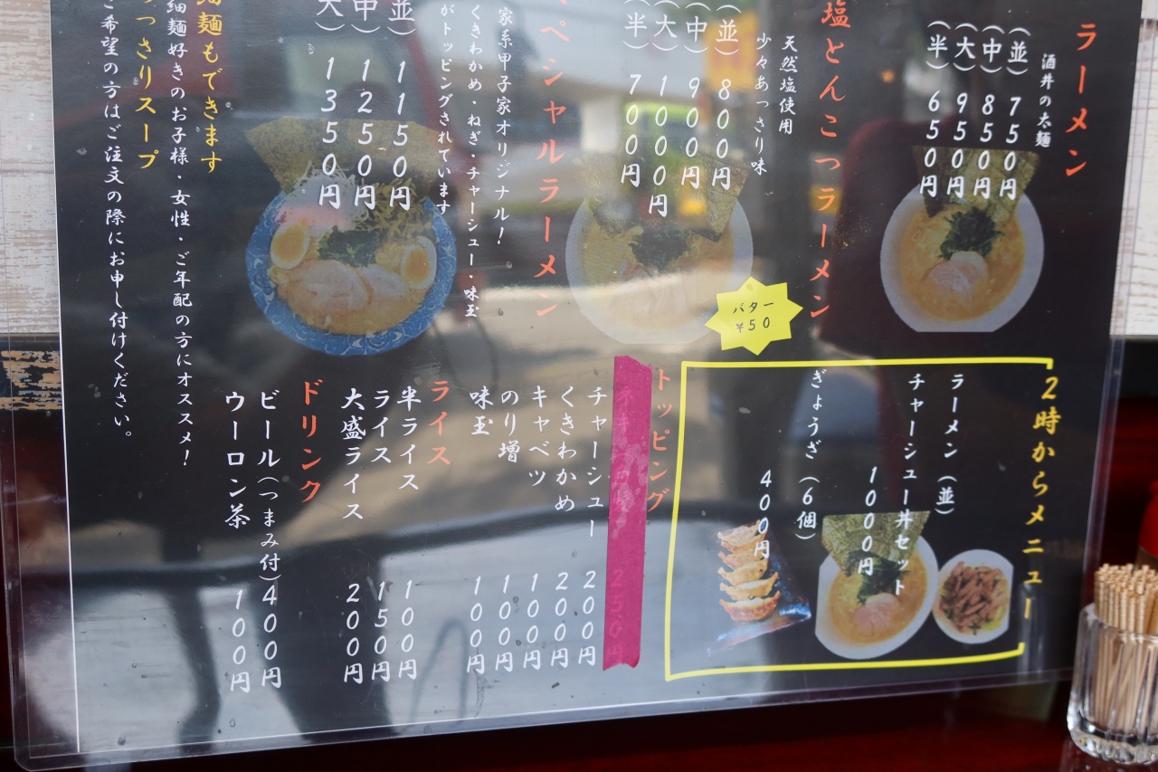 店内は厨房をコの字型に囲むカウンター席のみで15人程座れます。ラーメンは所謂横浜家系ラーメン(醤油とんこつ)がメインですが、今回頂いたのは塩とんこつラーメン。メニューには、あっさりと書いてありましたが、天然塩仕立ての塩とんこつスープはしっかりした味とコクが美味。また訪れたいと思います。