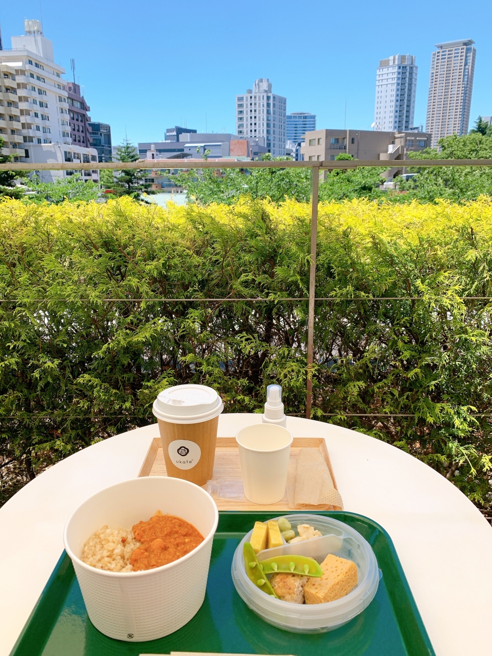 天気が良かったので、緑豊かな景色が楽しめるテラスで食事を楽しみました。