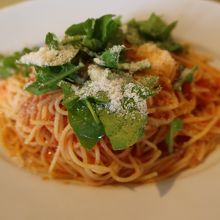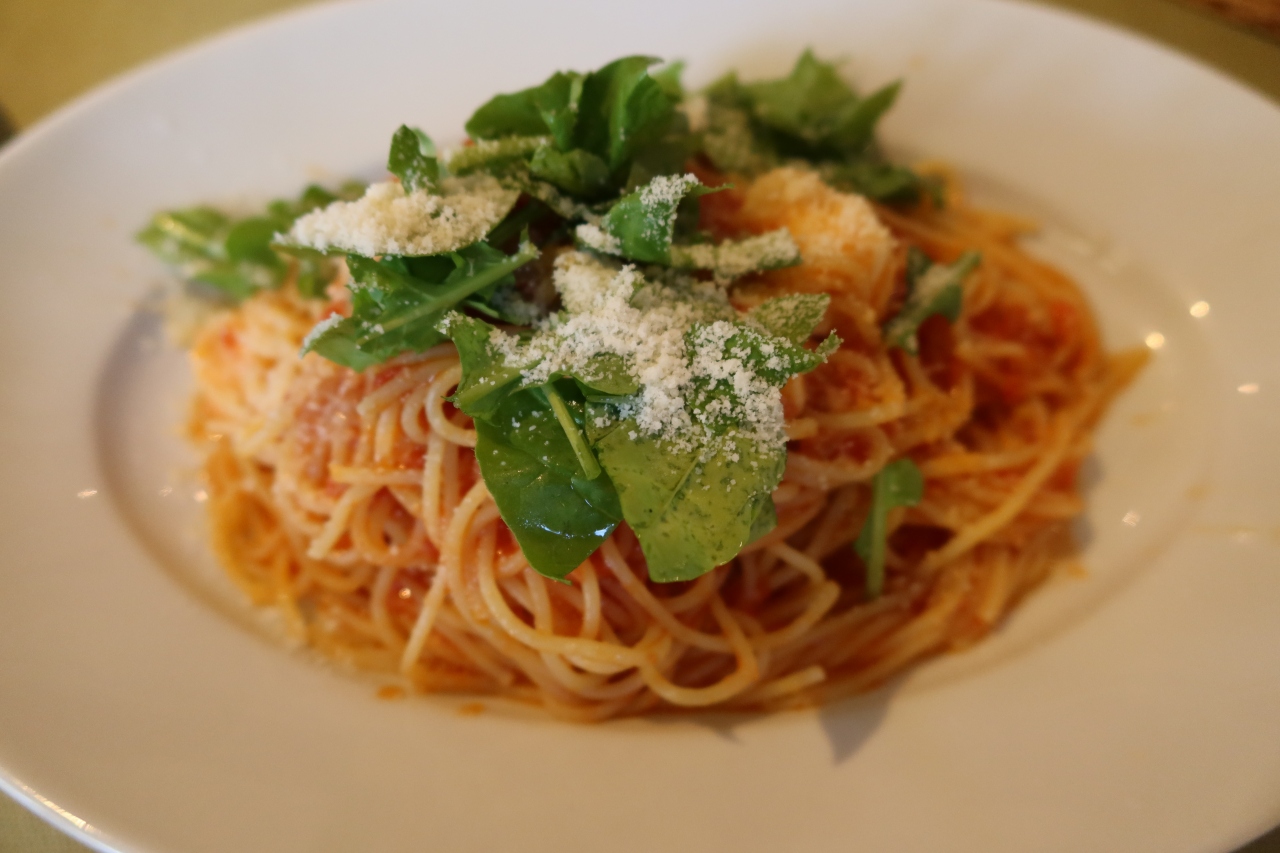 成瀬駅から北に300m程行った所にあるイタリアンレストランです。オレンジ色の外国風のお店には広い駐車場が完備されており、平日の昼に行ったのですが、駐車場は2/3以上埋まっており人気の様です。頂いたランチメニューはモッツアレラとルッコラのトマトソースのパスタ+自家製パン+アイスコーヒーで980円。パスタはしっかりとアルデンテに茹でられおり、チェーン店にしては安くて美味しいです。また入口ではケーキも売られており、白桃のショートケーキを買いましたが、こちらもチェーン店とは思えない味。