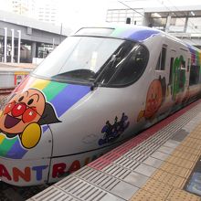 JR宇野線(宇野みなと線)、本四備讃線(瀬戸大橋線)、予讃線岡山ー松山間を走行する特急です。乗車券の他に特急券が必要です。通常の車両の他にアンパンマン列車で運転される列車があり、こちらの方が人気があります。外装だけでなく内装、シートもアンパンマンらしい席があるので、そちらに乗るのをおすすめします。通常の指定席料金だけで乗れますので価値があります。