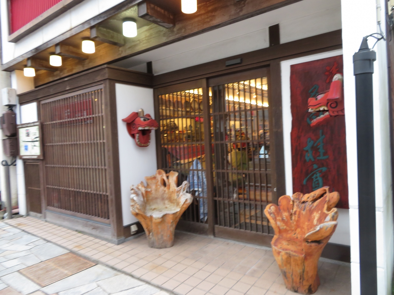 こちらのお店は漆の器の専門店で直売所です。漆の器のお店は他にはなかったようなので、ここで見て下さい。目の保養になります。おそらく入口に飾ってある鬼のようなお面もおそらく漆かな?と思いました。その下に置いてある一対のオブジェは謎でした。