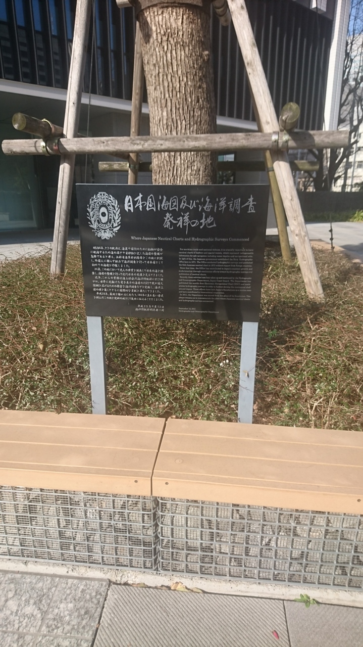 大江戸線築地市場駅A2出口を出てすぐの東京国税局の敷地内にこの説明板がありました。樹の植え込みに建てられており、誰でも見ることができます。明治初期に国防や海運の安全のために、政府が外国に頼らないで日本人だけで調査を行い、図面を作ったそうです。近代日本の幕開けを感じました。