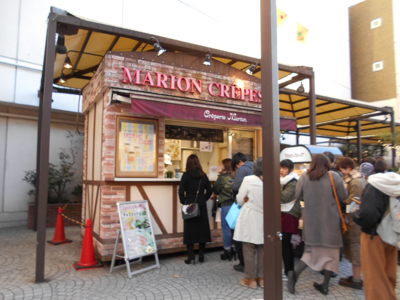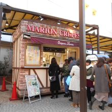 途中、通り沿いに「マリオンクレープ」さんの小さな店舗があったので、クレープをつまみながら行くことに。