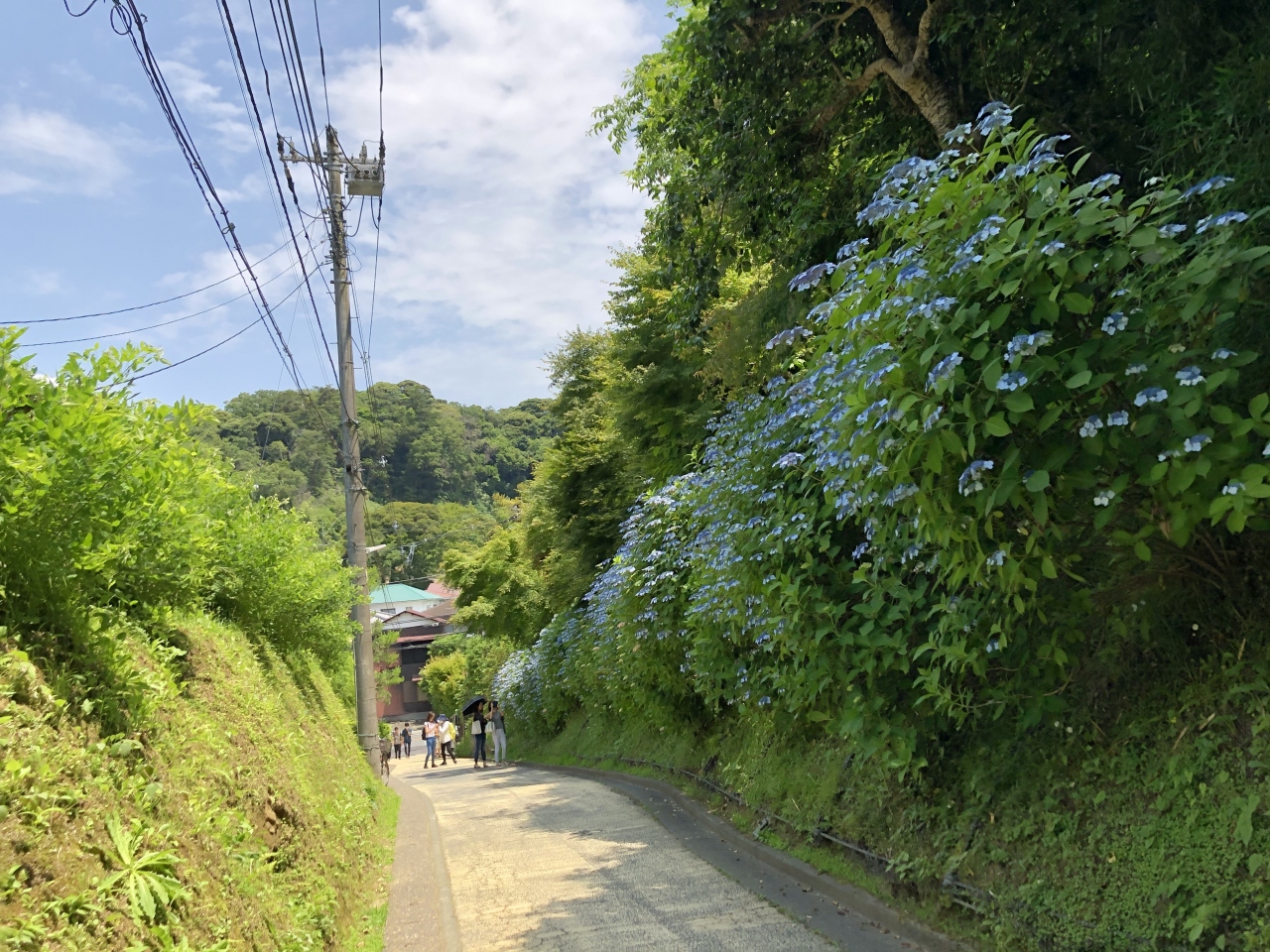 鎌倉七口のひとつで、国指定史跡となっています。扇ガ谷と山ノ内との間の山を切り開いて作られ道で、両側を岩に挟まれ、木々が生い茂っていますが、扇ガ谷側からは、かなり急な上り坂になっています。山ノ内側の切通しの出口付近はあじさいの名所で、あじさいの季節には、道に沿ってあじさいが咲き乱れています。