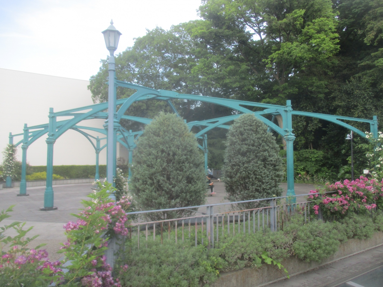パビリオン バルタールは元町商店街からフランス山公園に入る入口にあります。ここはかつてフランス領事館があった跡地ですが、実在するのは、鉄骨のフレームを組み合わせてできた大きなモニュメントです。パリ中央市場の一部を利用して造られた文化的遺産なようで少し驚きました。