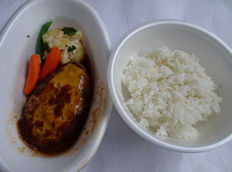 テイクアウトもやっていました。それも全部税込600円。ハンバーグを購入。ライス大盛りも無料。