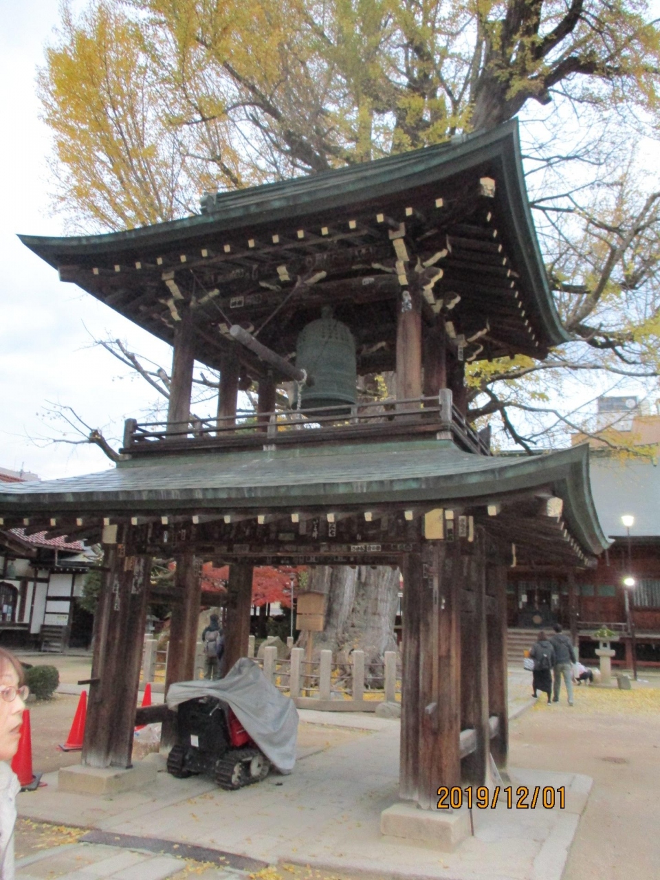 高山の古刹・飛騨国分寺の境内、鐘楼のおくにある大きなイチョウの木です。このイチョウは行基によって植えられ、樹齢1250年といわれ、国の天然記念物に指定されています。とても大きく見事なイチョウで、飛騨・美濃紅葉33選にも選ばれています。