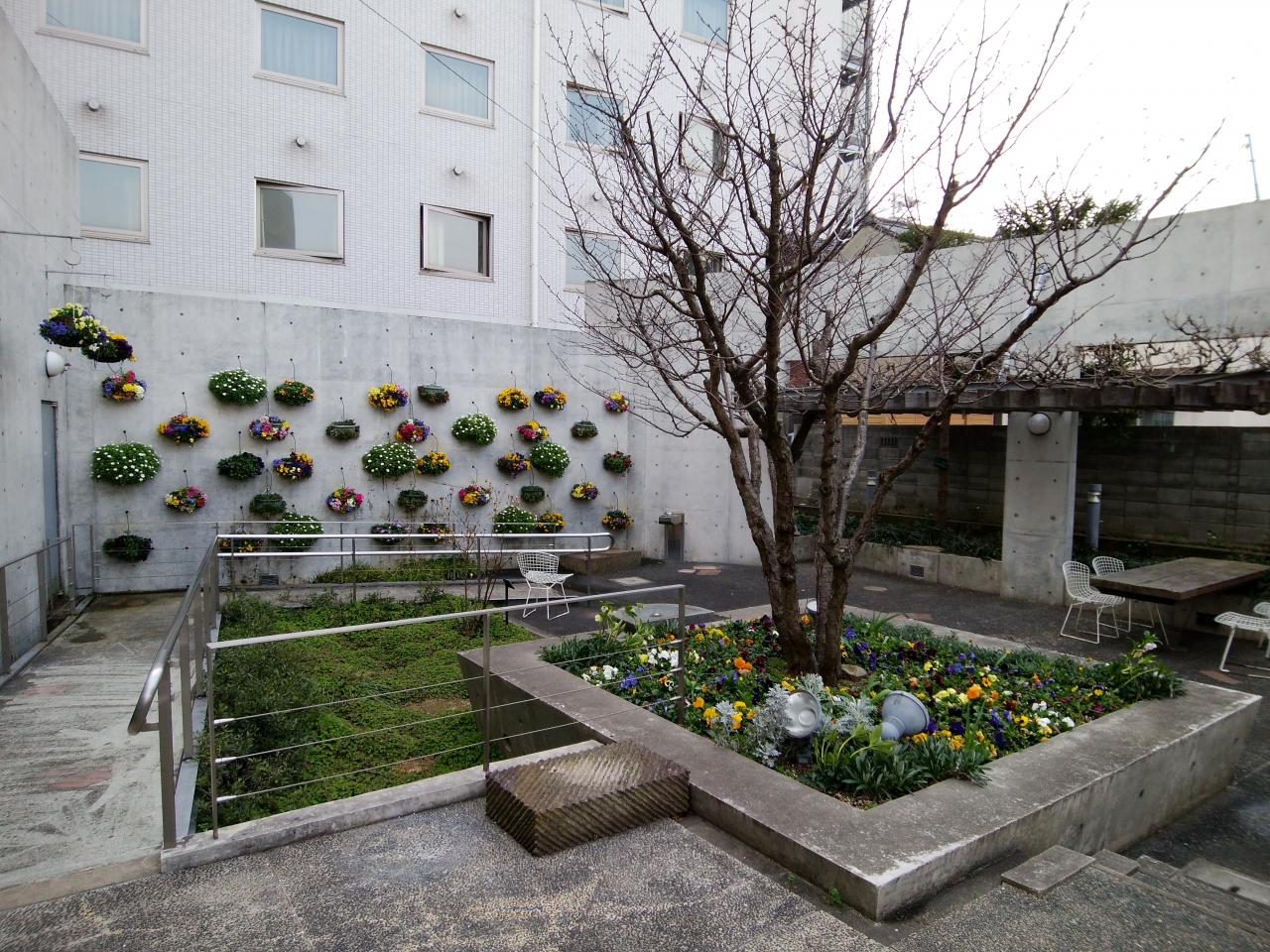 倉敷市が独自に取り組む「花いっぱい運動」の一環として設けたポケットパークだ。美観地区の入り口的な場所にある。季節の花々や木々が植えられているが、12月に咲くヒマワリザクラが珍しい。イスなどもあり、観光客の憩いの場としても機能している。